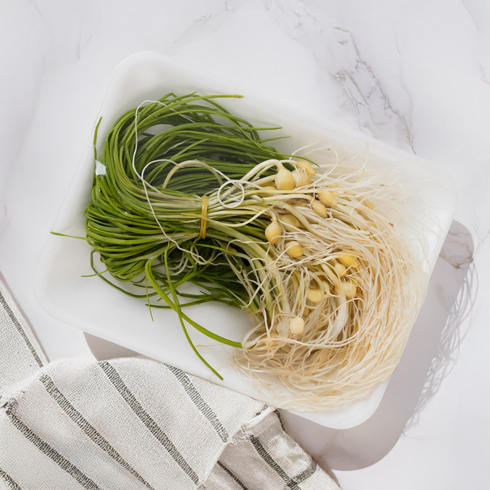 먼저 달래 뿌리 끝부분의 흙을 제거한 뒤 흐르는 물에 여러 번 깨끗이 씻어줍니다. 특히 뿌리 사이에 흙이 남지 않도록 손으로 살살 흔들어가며 씻는 것이 좋습니다.
