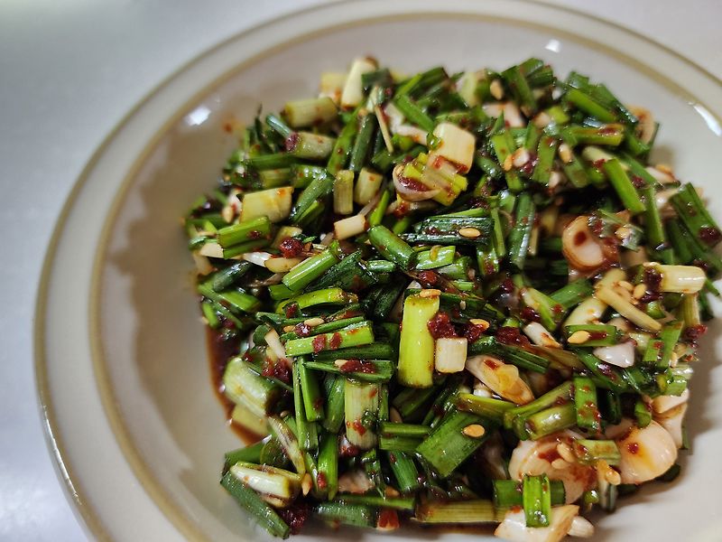 달래에 양념을 붓고 젓가락으로 가볍게 뒤집듯 섞어주는 것이 좋습니다. 너무 세게 섞으면 달래가 숨이 죽어 식감이 떨어질 수 있습니다.