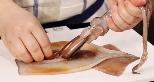 먼저 오징어 몸통을 갈라 내장을 제거하고, 다리 부분의 입도 함께 제거해줍니다. 흐르는 물에 깨끗이 씻은 뒤 껍질은 기호에 따라 벗기거나 그대로 사용할 수 있습니다. 껍질을 벗기면 식감이 조금 더 부드러워집니다.